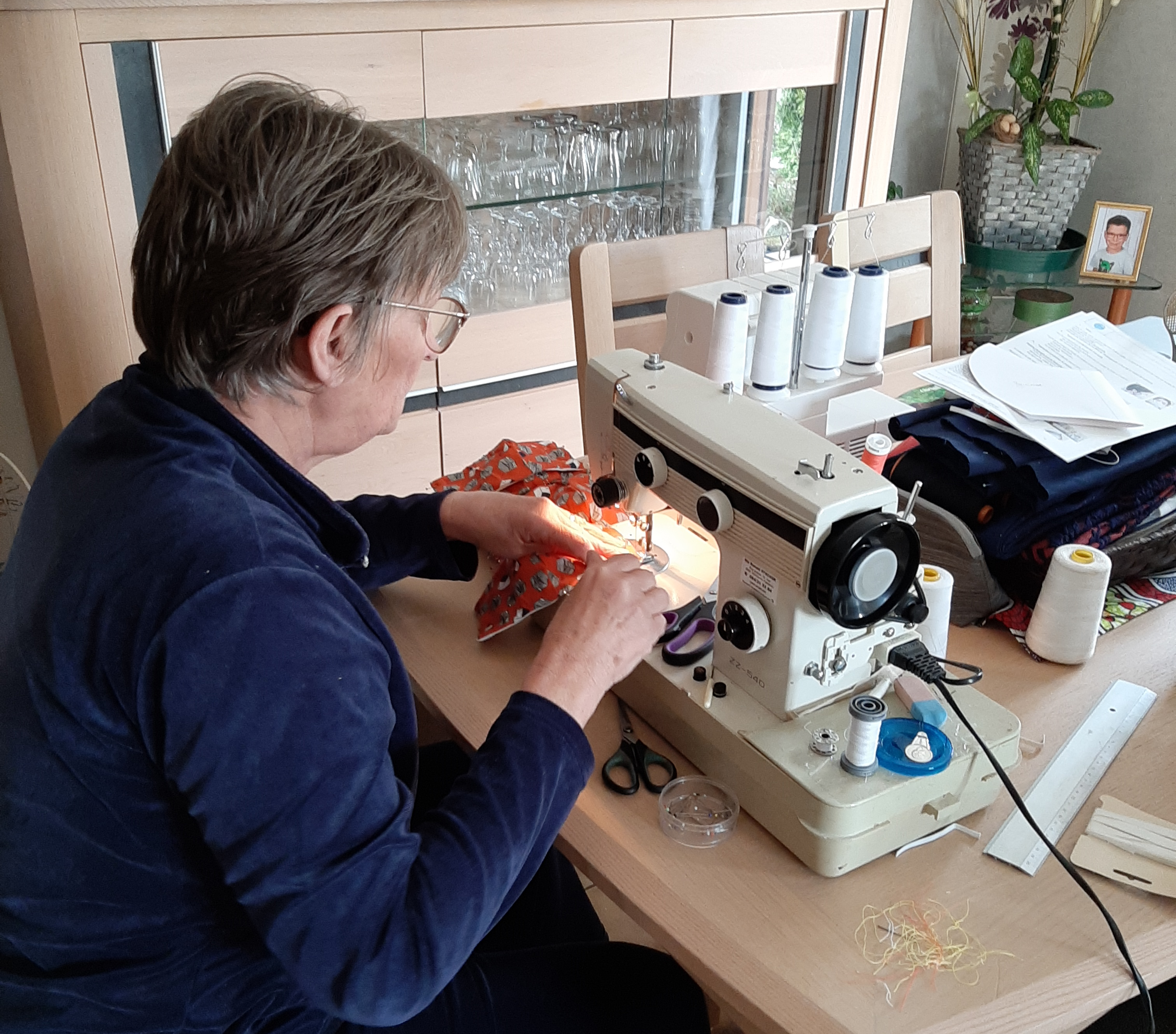 Nos volontaires nous confectionnent des masques. Merci à eux !